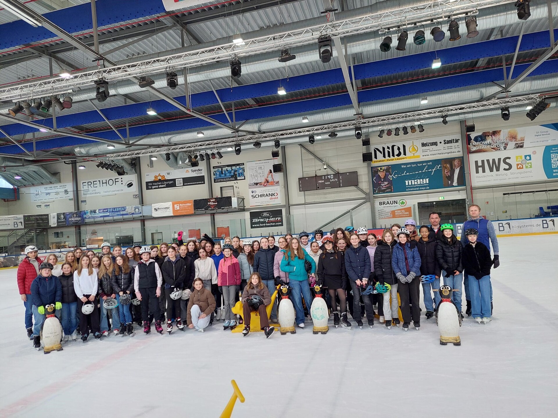 Kaum auf der Eisfläche angekommen, füllte sich diese schnell mit Leben. Mit viel Begeisterung drehten die Schülerinnen und Schüler ihre Runden, probierten neue Tricks aus und unterstützten sich gegenseitig. Ob Anfänger oder geübte Eisläufer – der Spaß an der Bewegung stand für alle im Mittelpunkt.